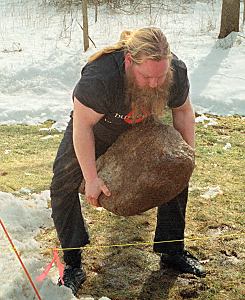 Weight lifting competitions used stones. The person who could lift the heaviest boulder was the winner. Some saga heroes were celebrated for their strength and their ability to lift huge stones, notably Grettir Ásmundarson. Some of the stones he lifted can still be seen on the Icelandic landscape today, and his legacy lives on in the term Grettistak used to describe a glacial erratic: a huge stone moved by a glacier. |