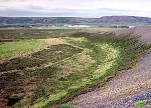 | In another case (E.s. ch40), it is said that knattleikr was played on the flatland Hvítárvellir (right) adjacent to the river Hvítá. Although the game was played in winter, ice is not mentioned in the story. |