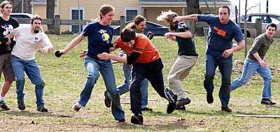 The first annual New England intercollegiate knattleikr competition (left) was held in April, 2007. A short video clip of a practice scrimmage by the Clark University team is available here in QuickTime (9MB) or Windows Media (7MB). |