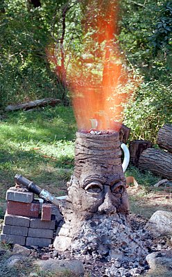 Recent (and on-going) archaeological research suggests that smelting furnaces in Iceland were made from stacked turf, with a combustion shaft in the center, lined with a thin layer of clay. We at Hurstwic have run this design several times (left) and find it the smoothest running of any of the designs we have tried. A slide show which describes this furnace constuction and operation in much more detail is available here. |