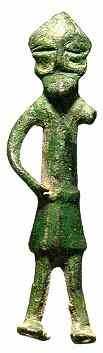 Tiny sheets of gold foil embossed with figures are found in many parts of the Norse world. Typically, these sheets are less than a centimeter square (3/8th inch), and are too light and fragile to have survived much handling. Many have been found in dwellings, under the posts that supported the structure, or under the location of the high-seat. Many depict a man and a woman embracing. One explanation for the foil figures is that they were deposited when the king or chieftain celebrated his wedding, and that the figures represent Freyr and his wife, the giant maiden Gerð. Another explanation is that the foils evoke the landvættir (land spirits) to protect and hallow the building. |